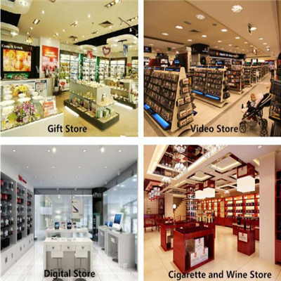 Anteny EAS są zainstalowane przy bramie sklepu, miękkie etykiety zabezpieczające przed kradzieżą EAS są instalowane na towarach, zainstalowany jest dezaktywator EAS AM W kasie, każdy pulpit kasowy jest wyposażony w jeden dezaktywator EAS.