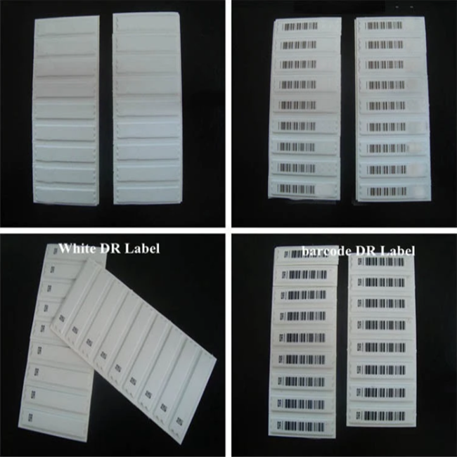 Yükseltilmiş logo ile yüksek algılama oranı yuvarlak DR + barkod baskı ile yumuşak etiket